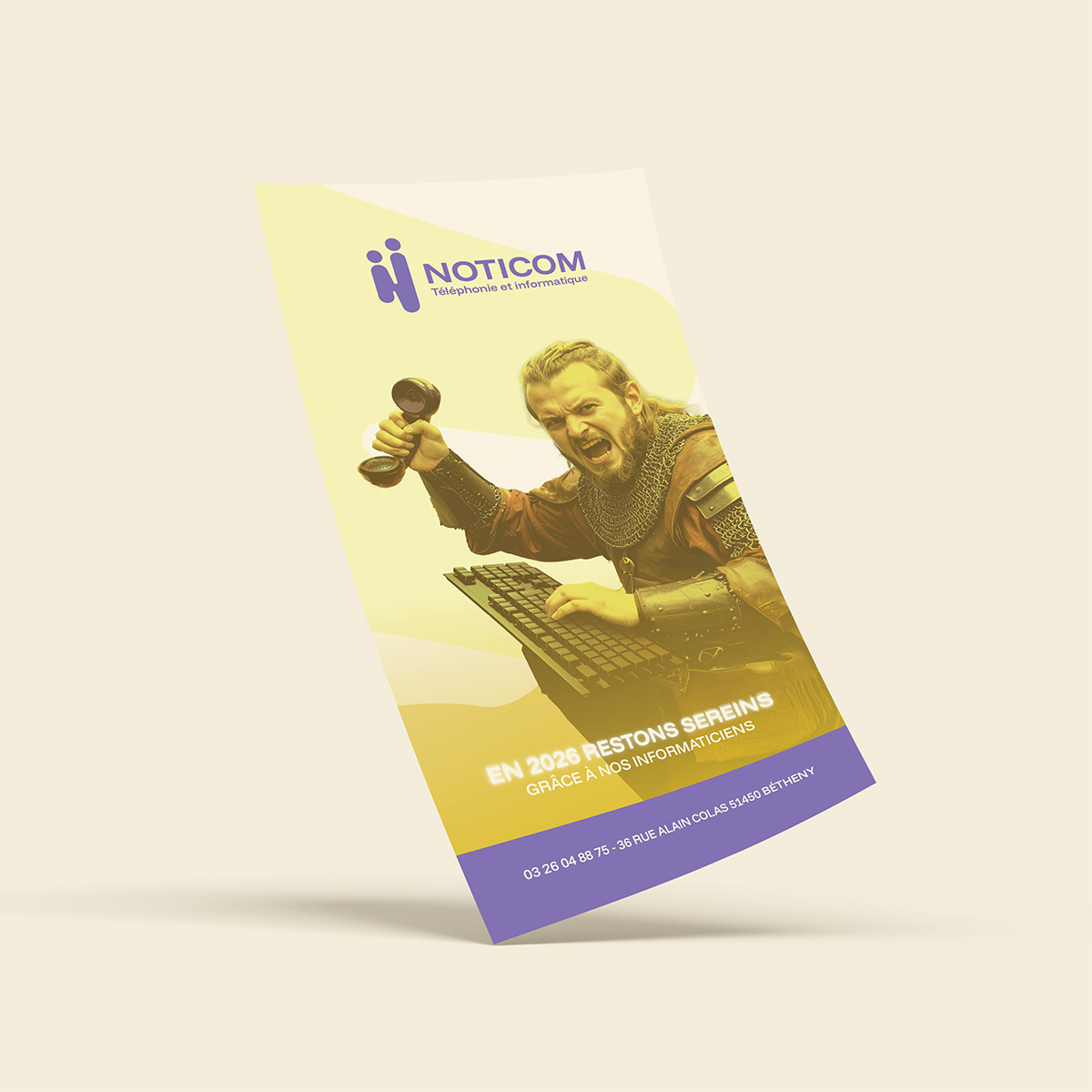 Noticom, entreprise basée à Bétheny et active sur Reims et son agglomération, est spécialisée dans le BtoB. Elle souffrait d’une image vieillissante, peu différenciante face à la concurrence locale dans le secteur informatique. Au moment de notre intervention, l’objectif de Noticom était d’actualiser son image, de renforcer sa notoriété et de mettre en valeur ses savoirs-faire et expertises.