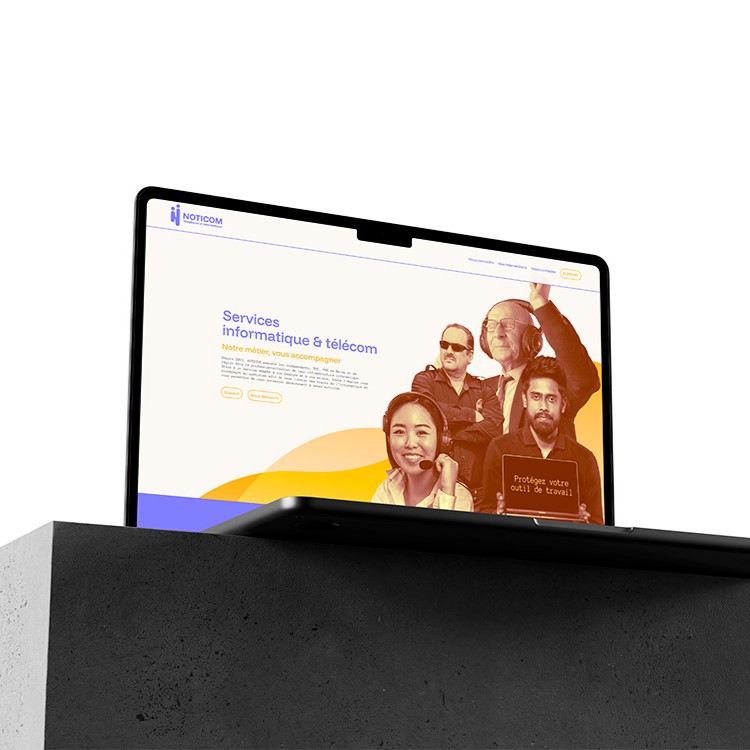Nous avons choisi de créer une identité clivante, rompant complètement avec les codes traditionnels de l’informatique. Noticom incarne désormais ses valeurs et reflète l’image de son équipe : accessible, sympathique, réactive et résolument humaine. La technologie passe au second plan pour laisser place à l’accompagnement des professionnels et au dépannage. L’essentiel pour une entreprise étant que son équipement soit opérationnel et performant.